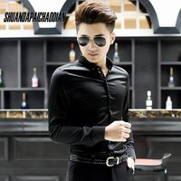 男士中袖光滑料衬衫免烫抗皱韩版绣花衬衣潮男长袖社会短袖寸衫男