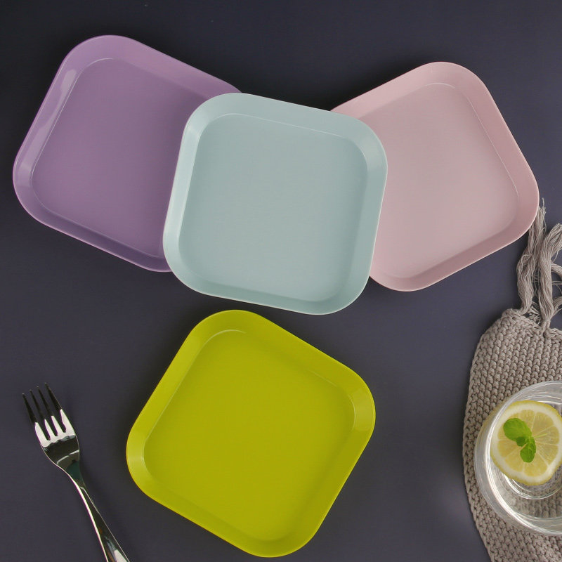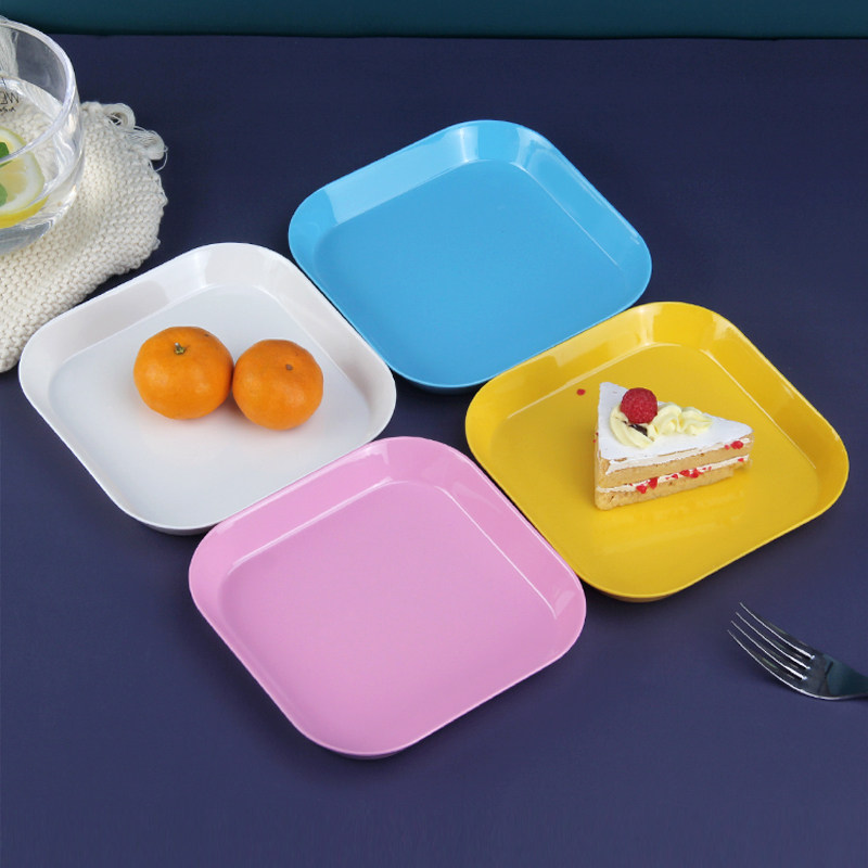 彩色果盘小吃点心盘方形垃圾盘家用塑料客厅用骨碟彩色小果盘可爱