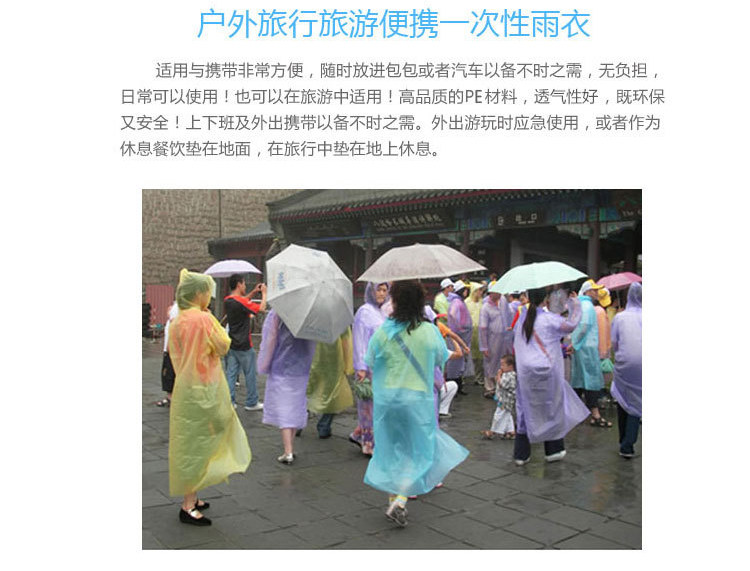 加厚透明通用户外旅游一次性雨衣