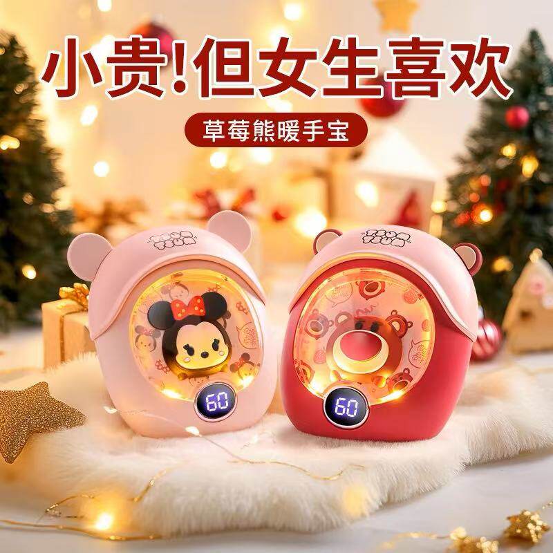 2025新款迪士尼暖手宝草莓熊随身便携充电宝手握式自发热暖宝宝女生礼物迷你可爱学生儿童热水袋男生冬季送礼