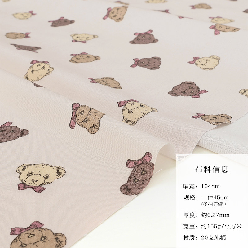日本进口milk latte20支平纹棉纯棉面料泰迪熊头像手工包抱枕布料