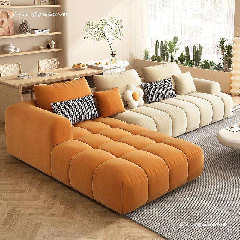奶油风沙发猫抓布布艺豆腐块意式极简风格客厅直排小户型网红沙发