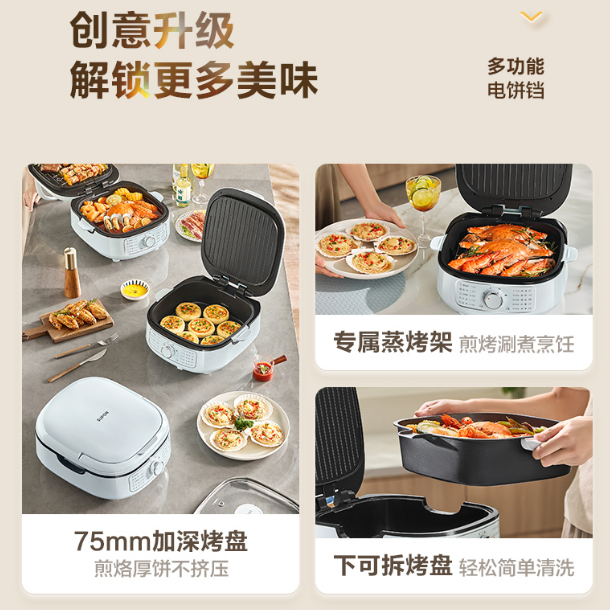 苏泊尔电饼铛可拆洗多功能烤肉锅75mm加深火力可调 JT2828R891