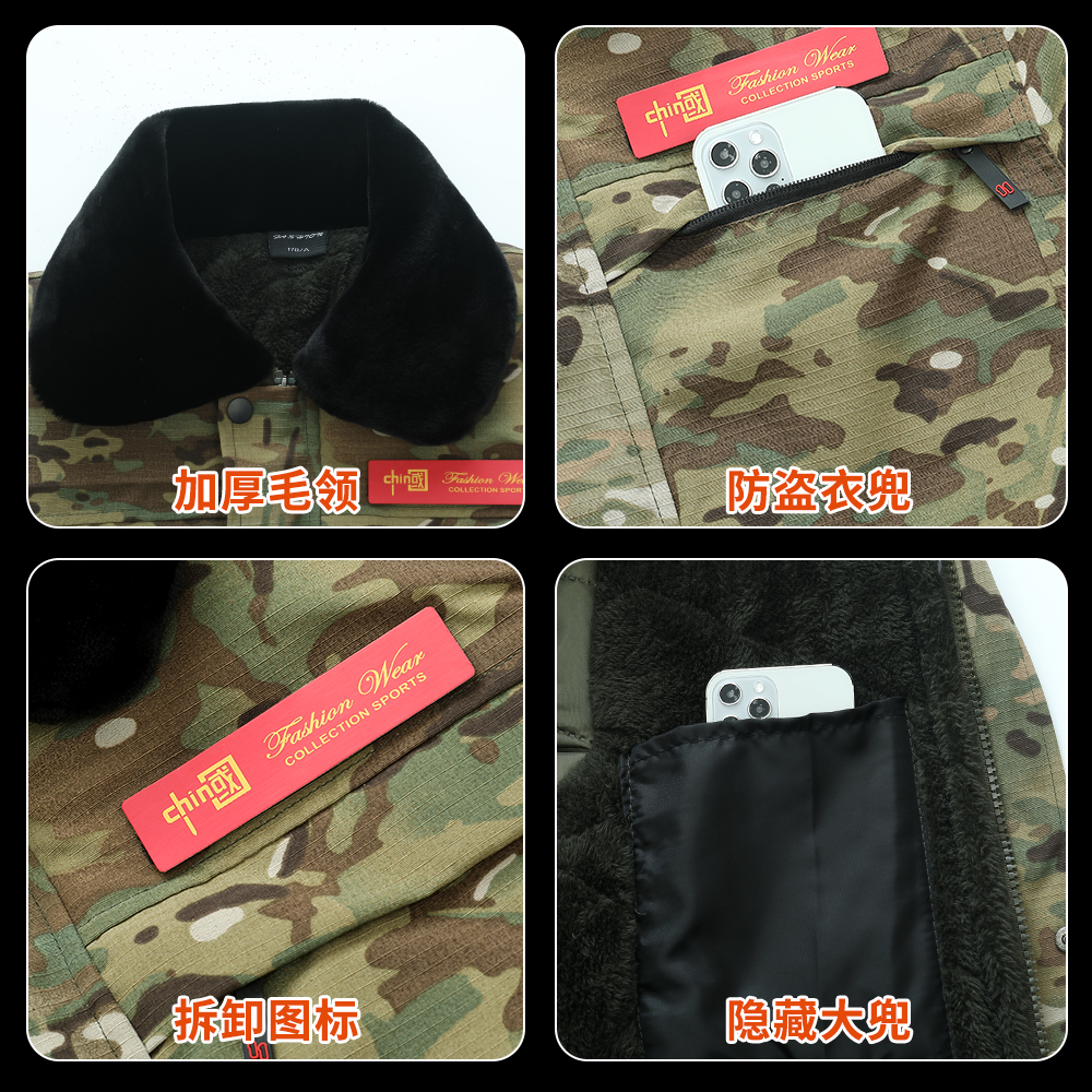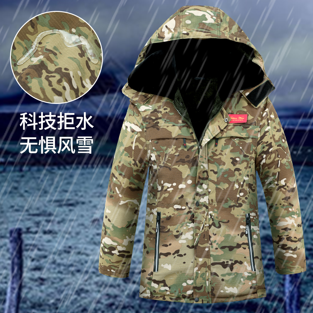 冬季加绒加厚棉衣男劳保棉袄耐磨防水迷彩棉服军棉大衣工装棉外套