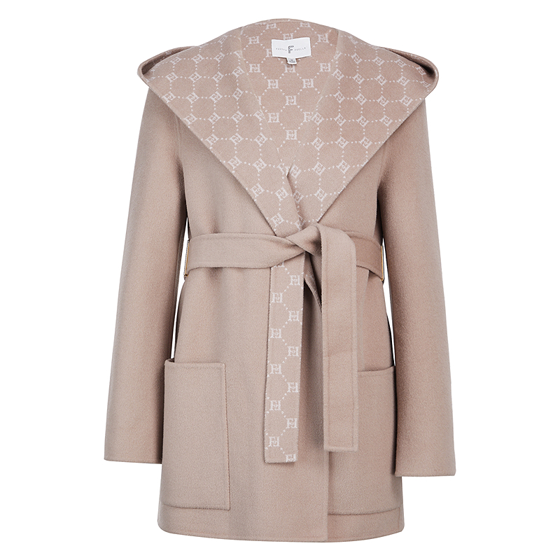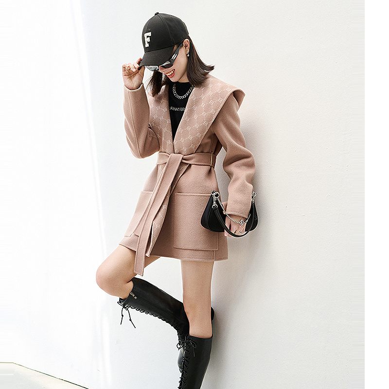 FF仿佛冬季粉色绵羊毛呢外套女羊毛中长款气质双面呢