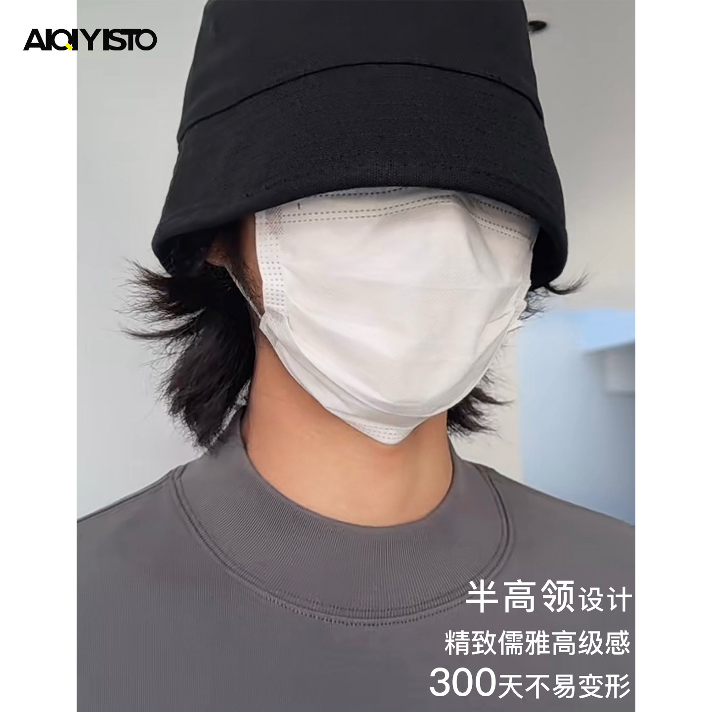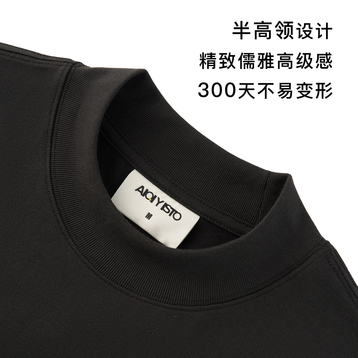 A1s半高领美式重磅短袖t恤男中领宽松落肩纯色全棉单穿内搭四季款