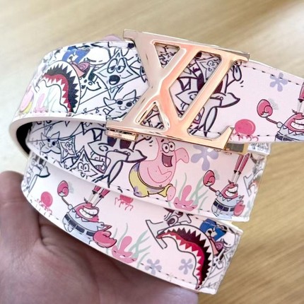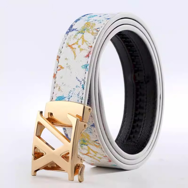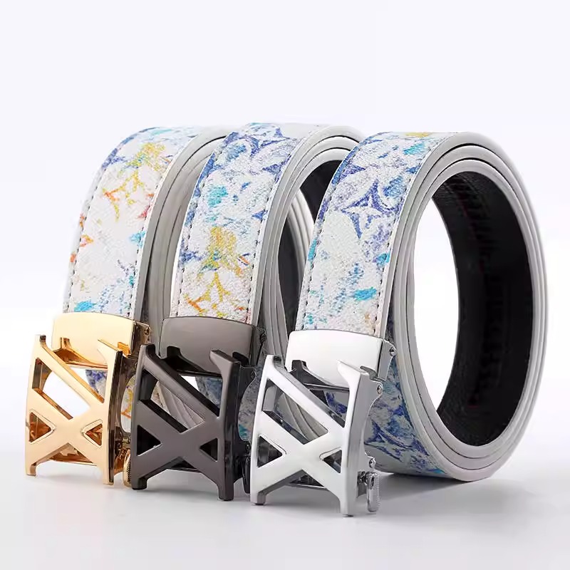 皮带腰带男潮流学生涂鸦自动扣百搭卡槽真皮牛仔裤网红同款