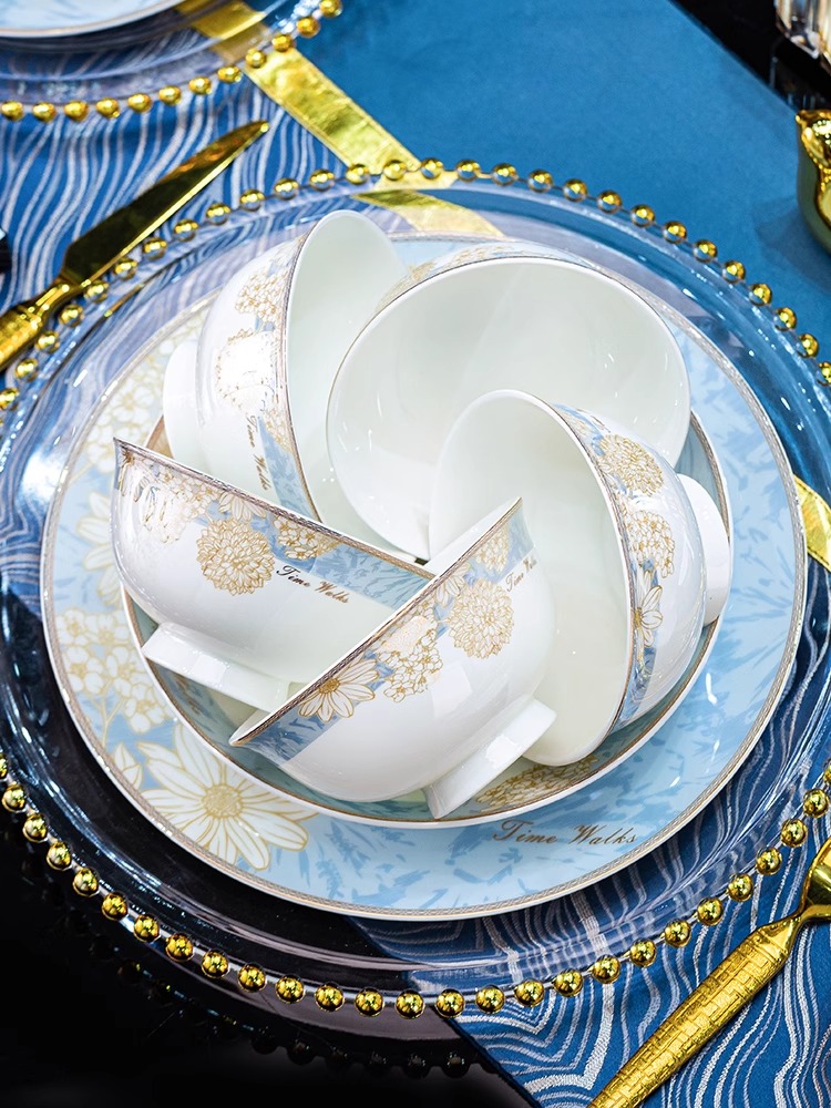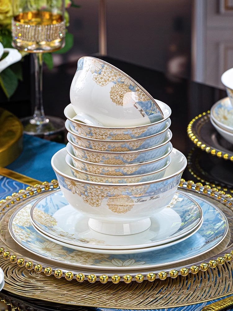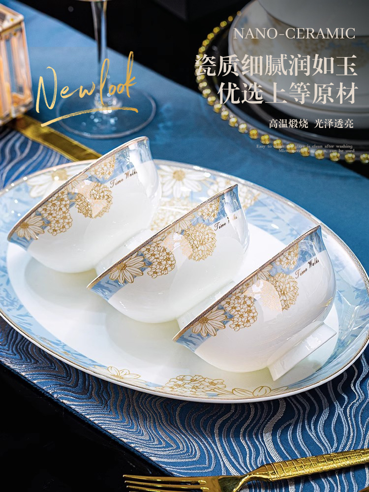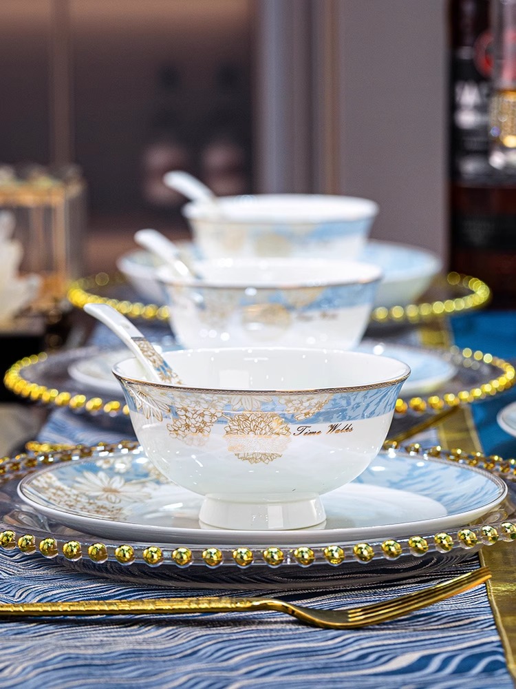 轻奢碗碟套装家用2025新款骨瓷餐具高级感碗盘陶瓷盘子碗套装乔迁