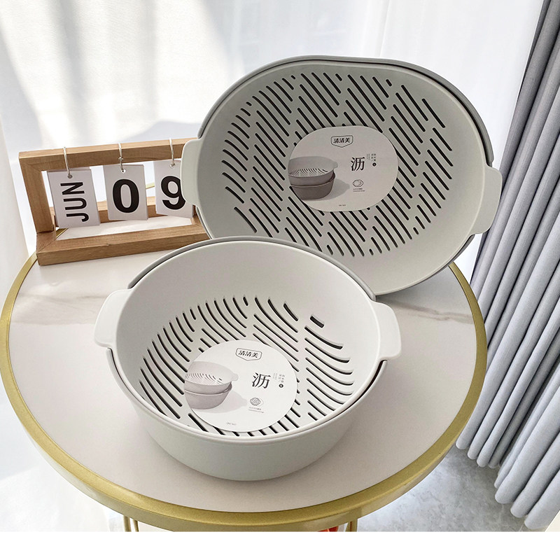 清清美洗菜盆沥水篮厨房客厅水果盘子双层菜篮子塑料架挂式洗菜篮