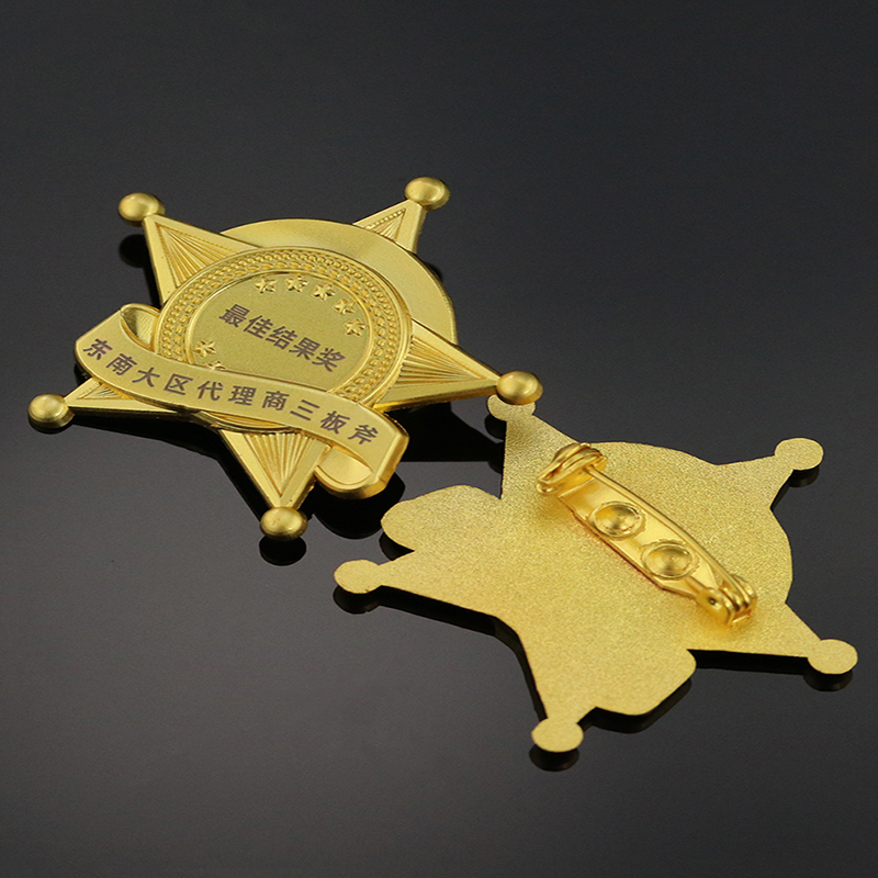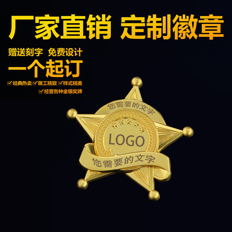 金属徽章定做勋章公司胸牌胸章激光刻字五角星纪念胸章胸针定制