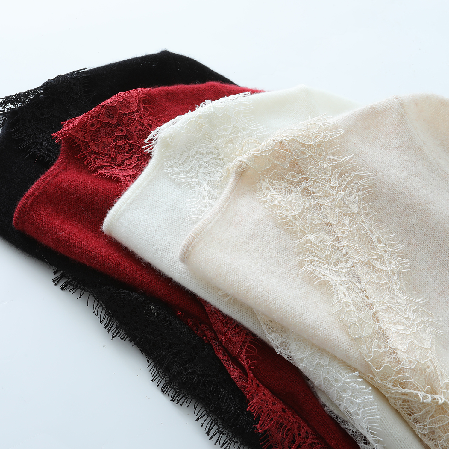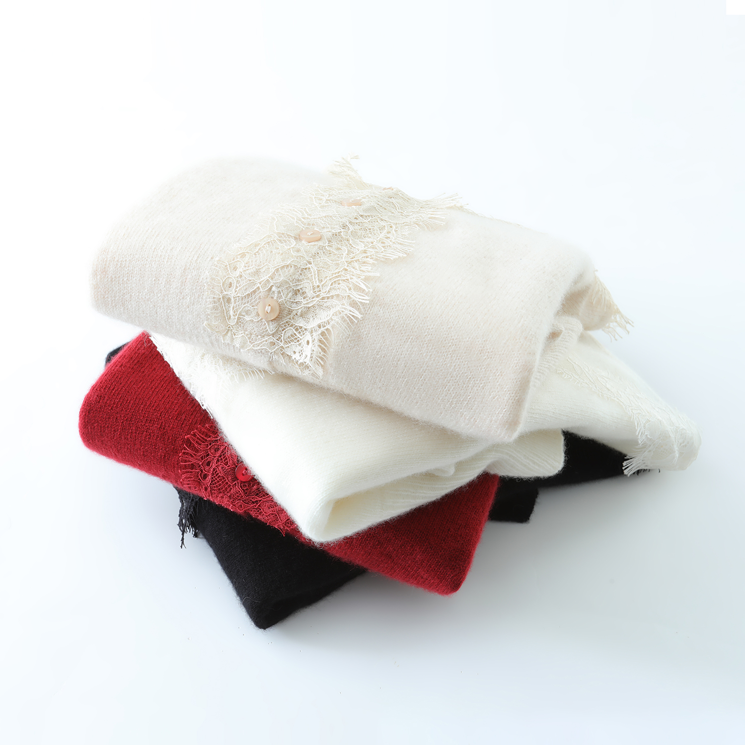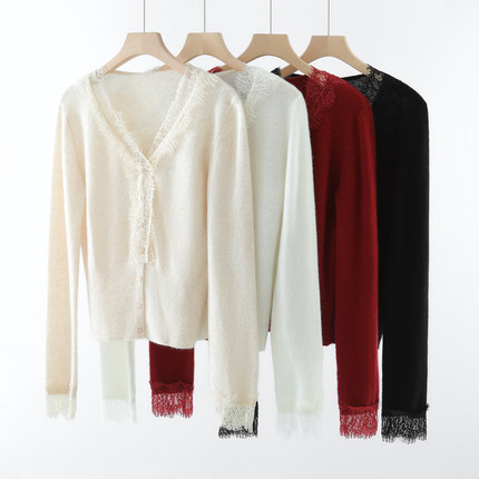 开衫柔软保暖羊绒衫V领蕾丝开衫