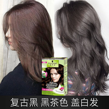 施华蔻怡然染发膏纯黑茶色植物无氨盖白发染膏自己在家染发剂官方