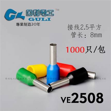 针型线鼻子VE2508冷压接线端子2.5平方欧式预绝缘插针管形压线耳