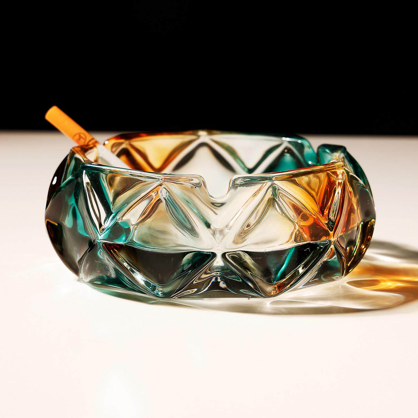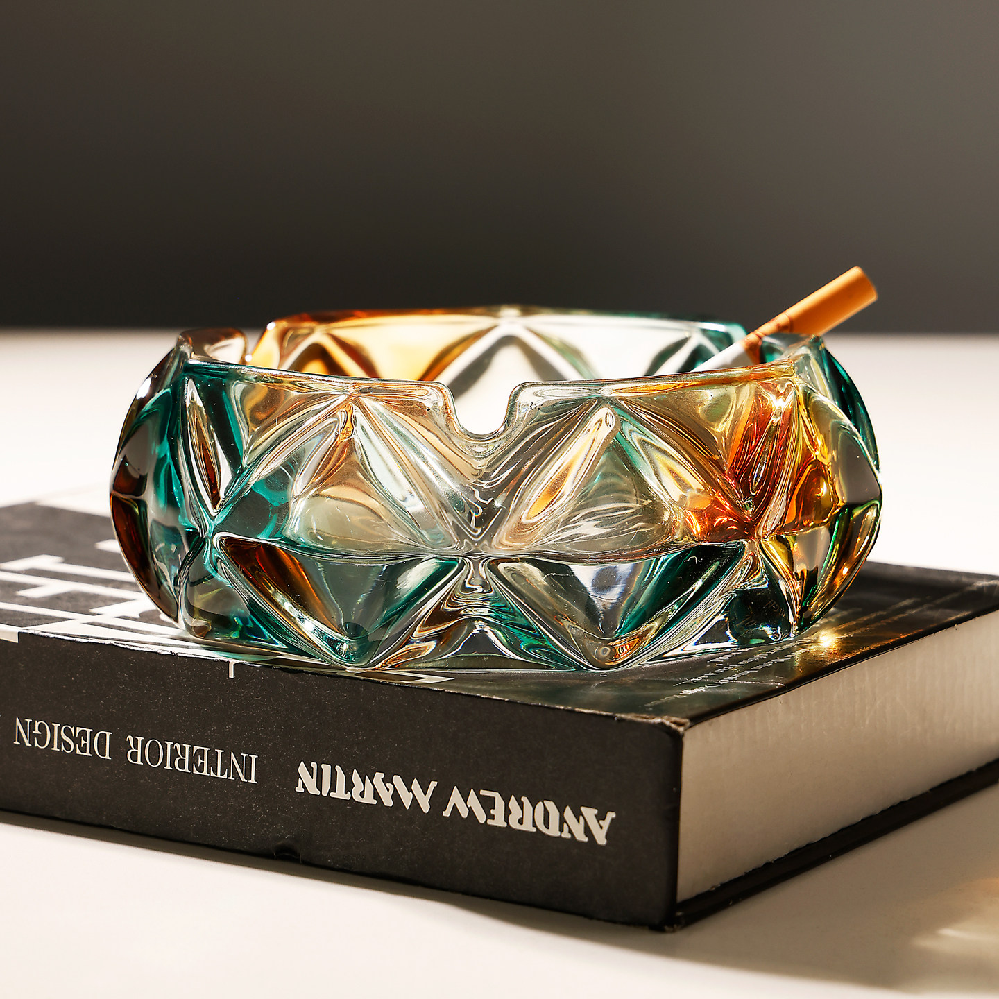 精致翡翠金水晶玻璃烟灰缸菱格纹个性家用老板办公室烟缸装饰摆件