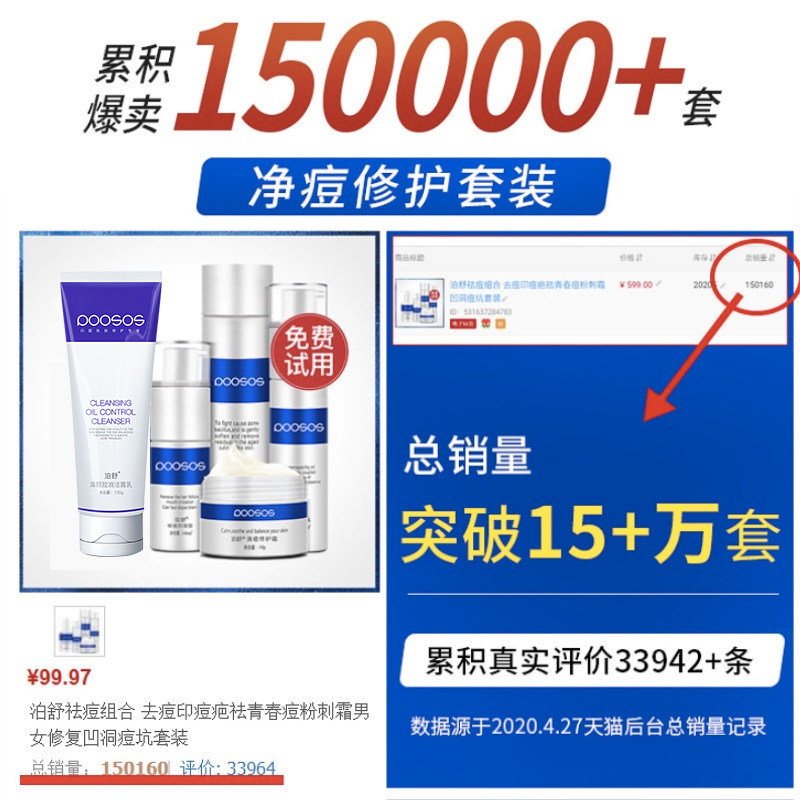 泊舒痘印痘疤祛青春痘粉刺霜洗面奶去男女修复凹洞痘坑祛痘膏套装