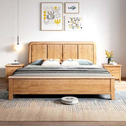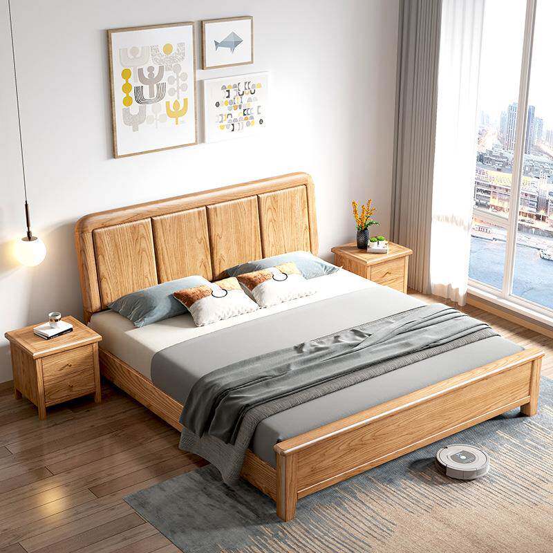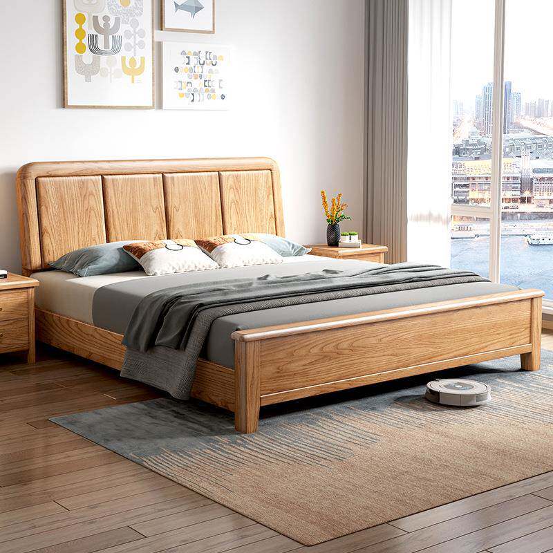 日式全实木1.8米主卧橡木婚床现代简约1.5米工厂直销原木色双人床