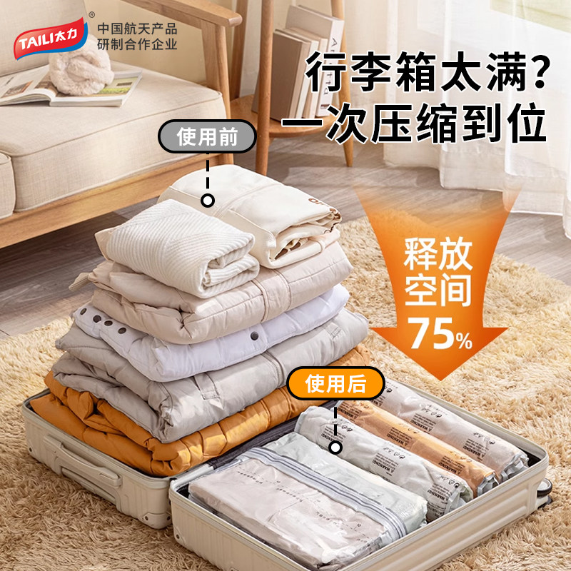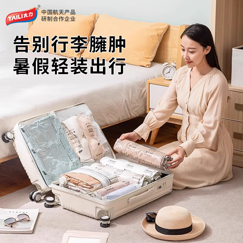 TAILI/太力手卷旅行压缩袋加厚收纳袋折叠衣服免抽真空压缩行李箱