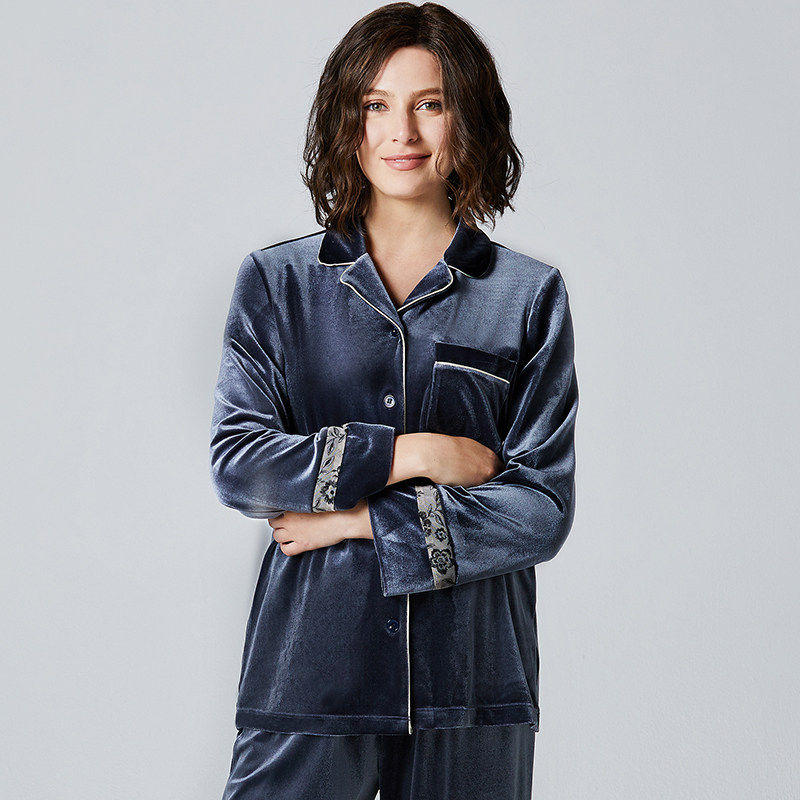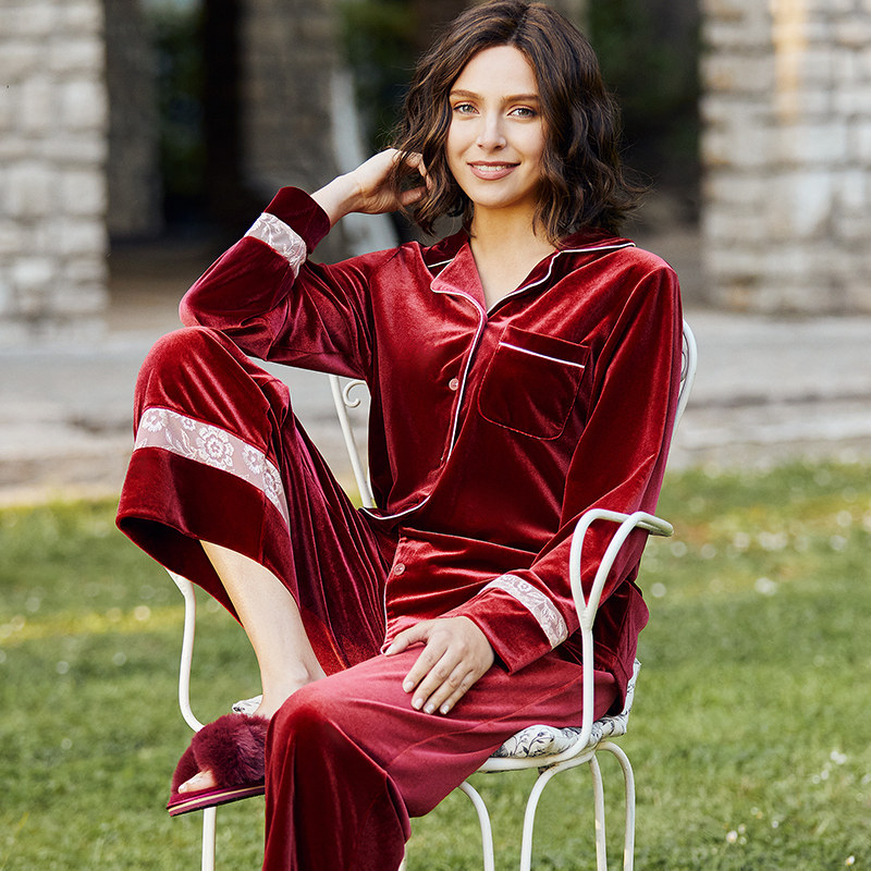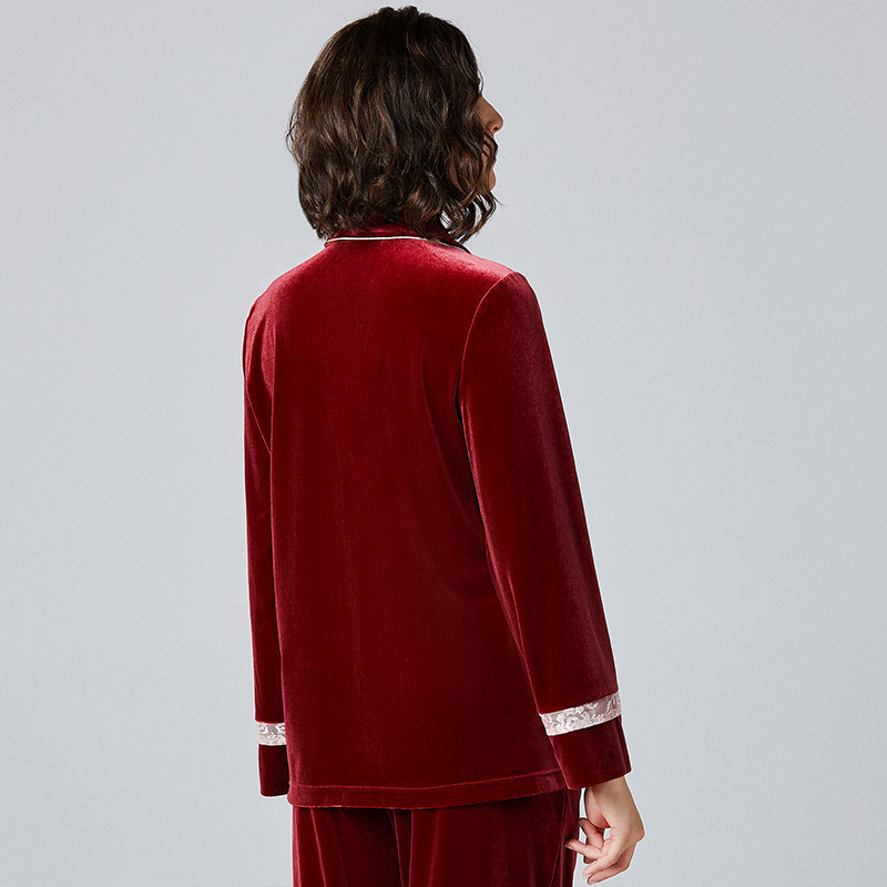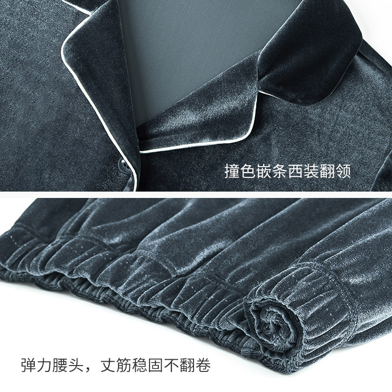 5折|桑扶兰丝绒保暖家居服长袖直筒翻领上下睡衣套装女士