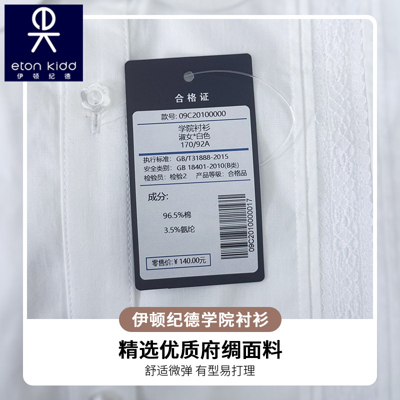伊顿纪德校服 儿童白色衬衣童装学院纯色春秋女童长袖衬衫09C201