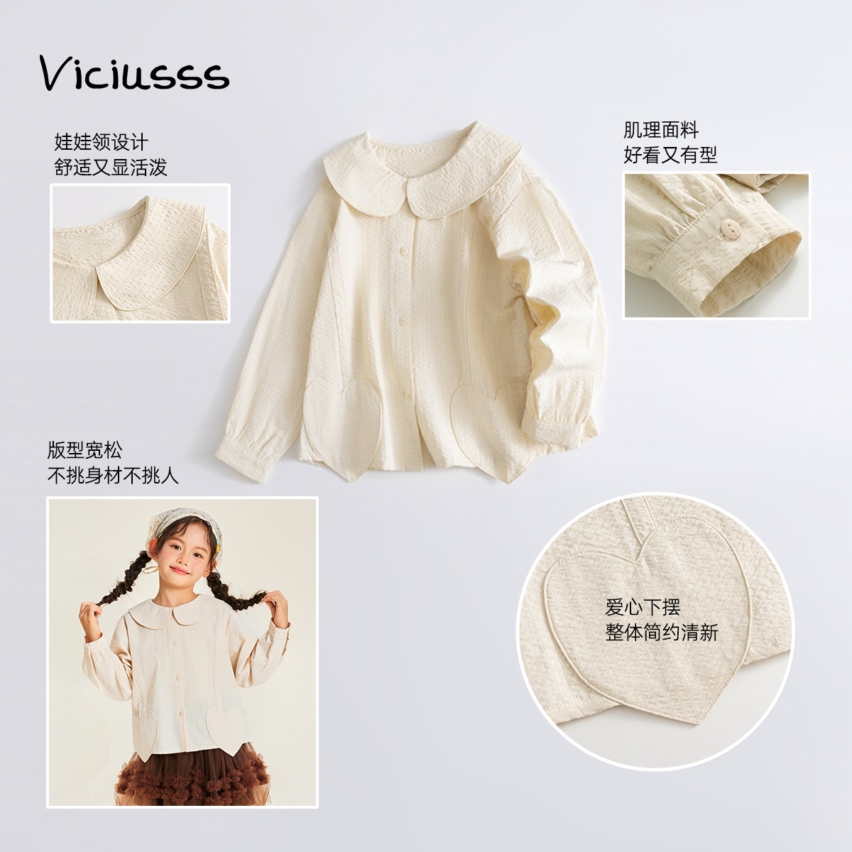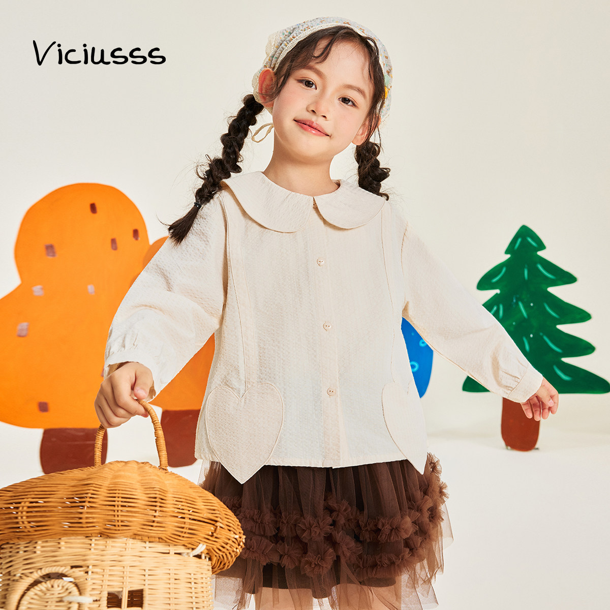 Viciusss丸社童装女童衬衫长袖春秋季新款洋气女孩娃娃领衬衣上衣