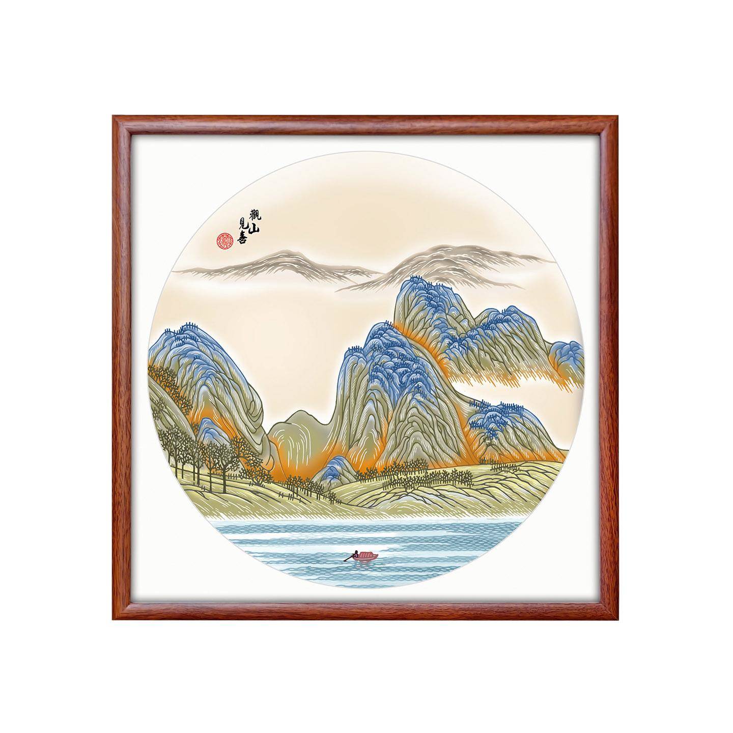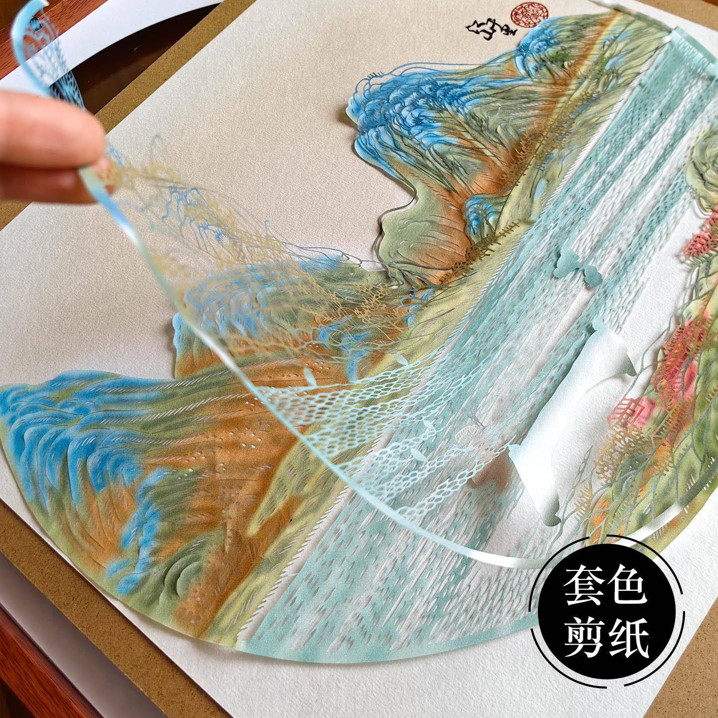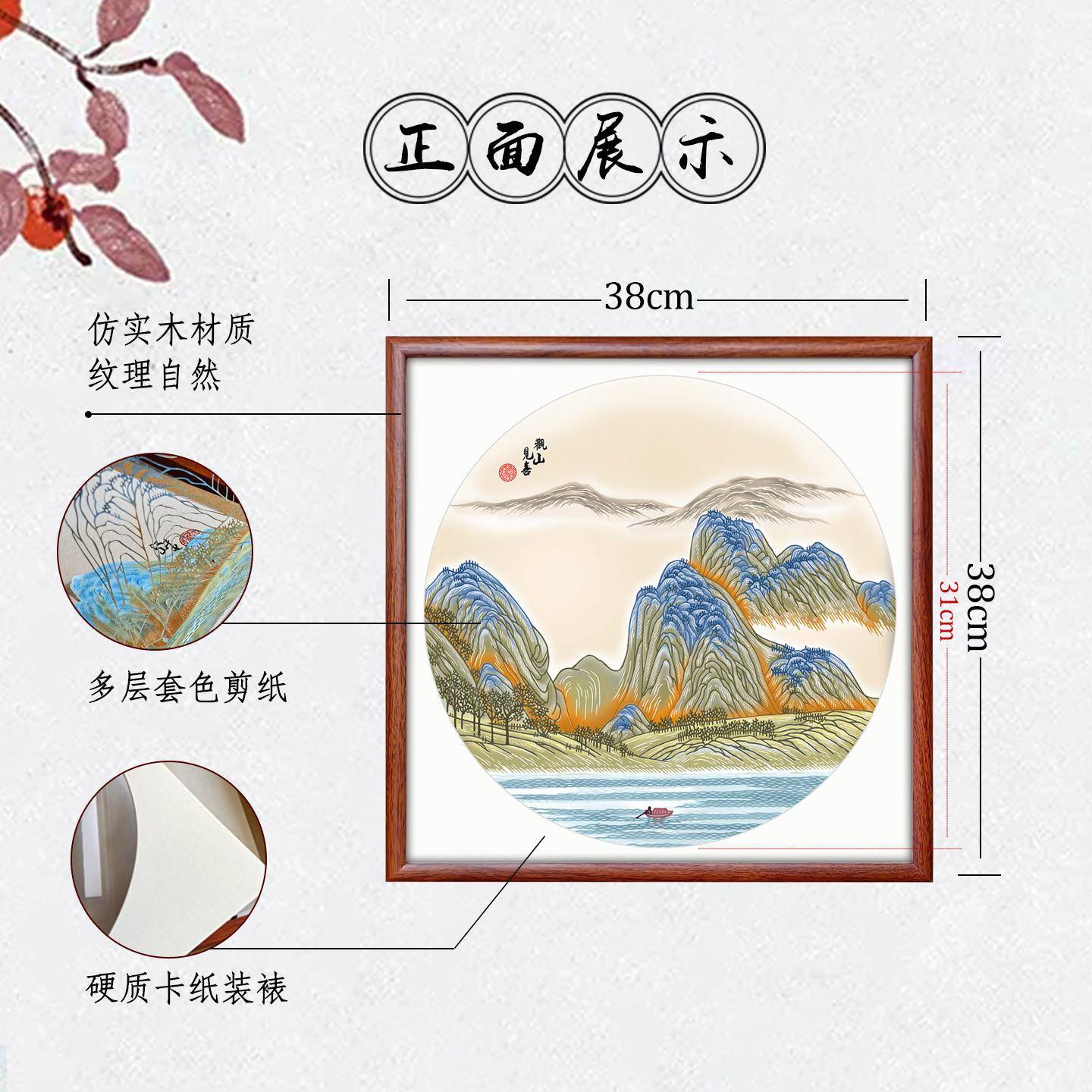 中国风特色手工多层套色立体山水风景剪纸家居装饰画框相框
