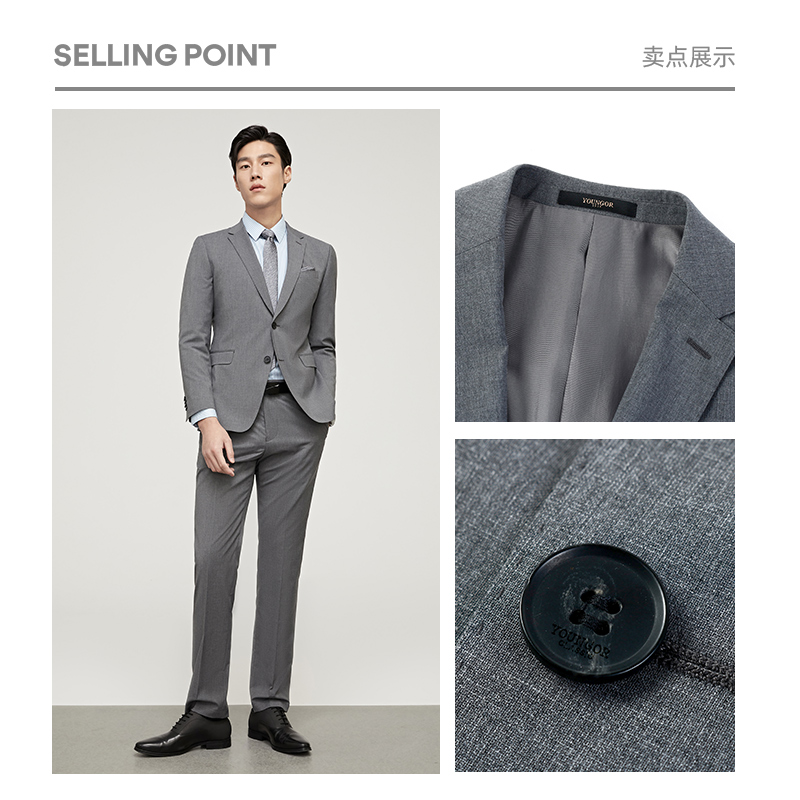 雅戈尔男士西服春新款官方商务休闲羊毛结婚伴郎西装外套男