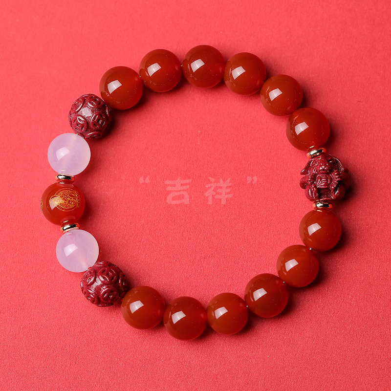 2025单圈手链女蛇年本命年红玛瑙朱砂手串属虎猪猴龙吉祥物礼物男