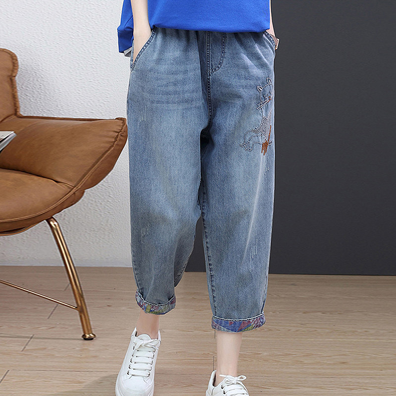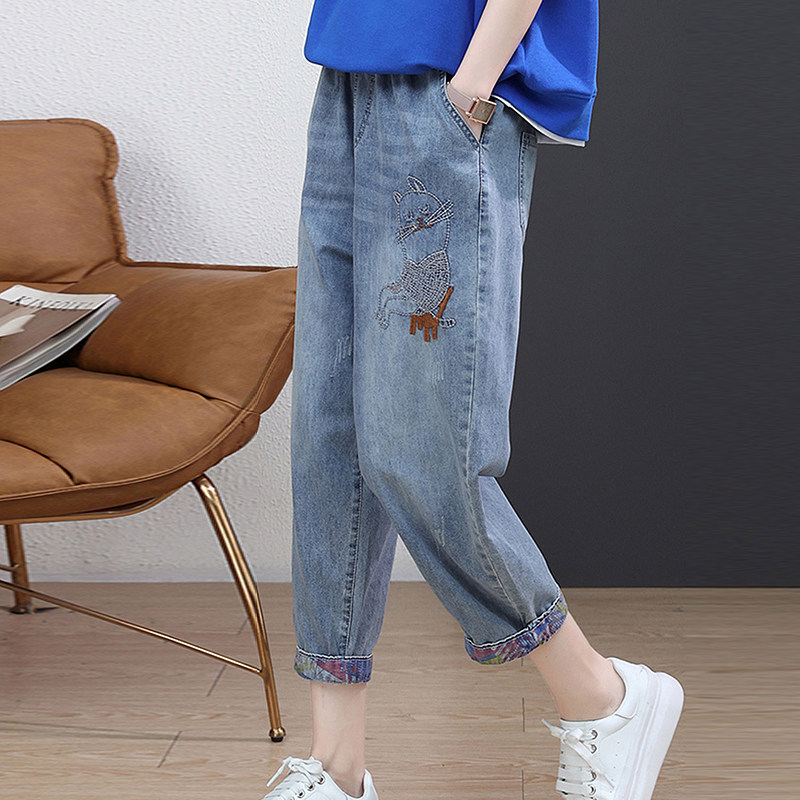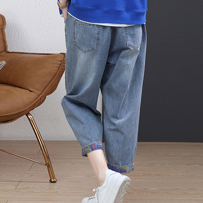 时尚直通牛仔裤女2025秋季新款宽松显瘦百搭萝卜裤七分休闲哈伦裤