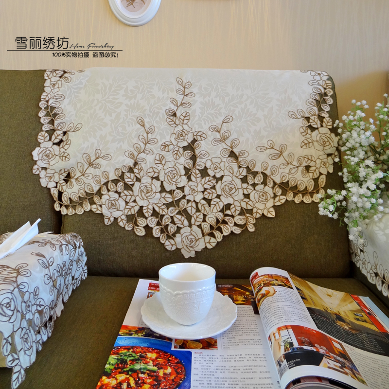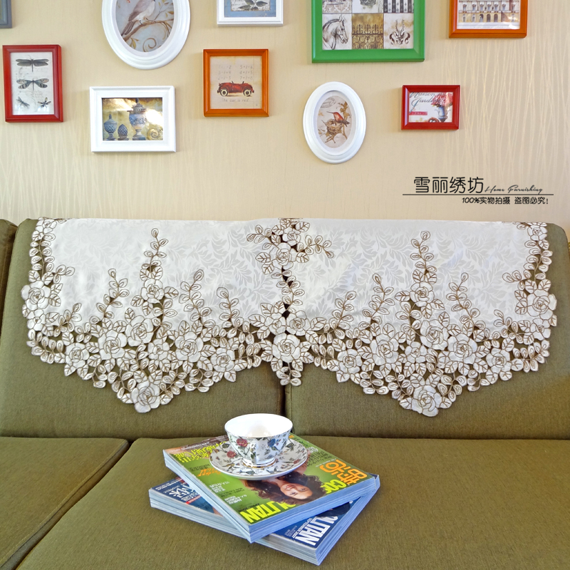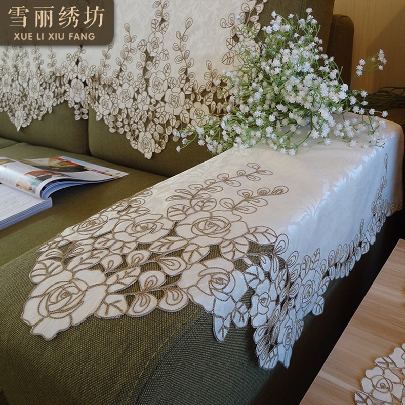沙发靠背巾扶手巾沙发套绣花布艺欧式美式中式防尘盖巾帘香槟玫瑰
