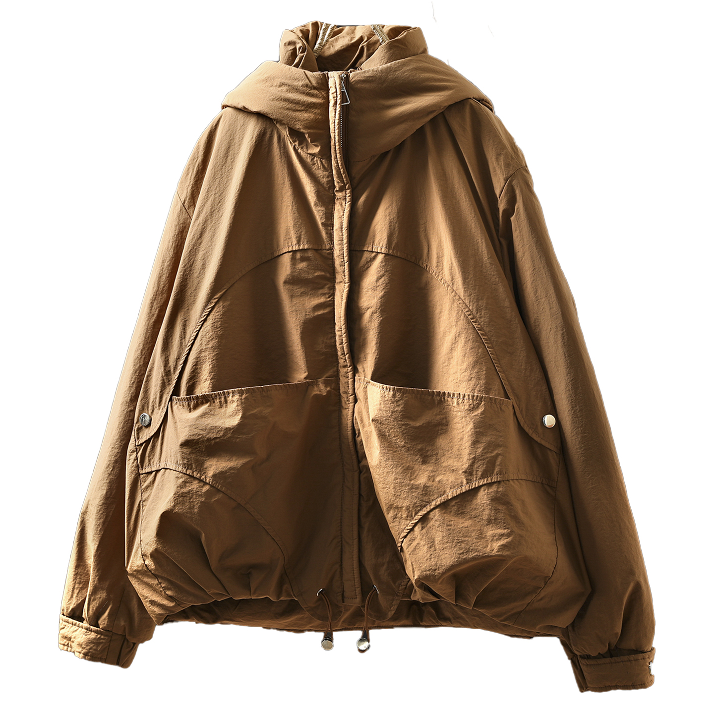 超好看夹棉薄外套女2025冬新连帽小个子短款设计感宽松双口袋棉服