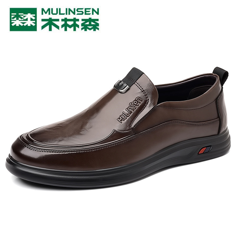 木林森皮鞋男2025新款真皮软底商务休闲一脚蹬皮鞋时尚英伦风皮鞋