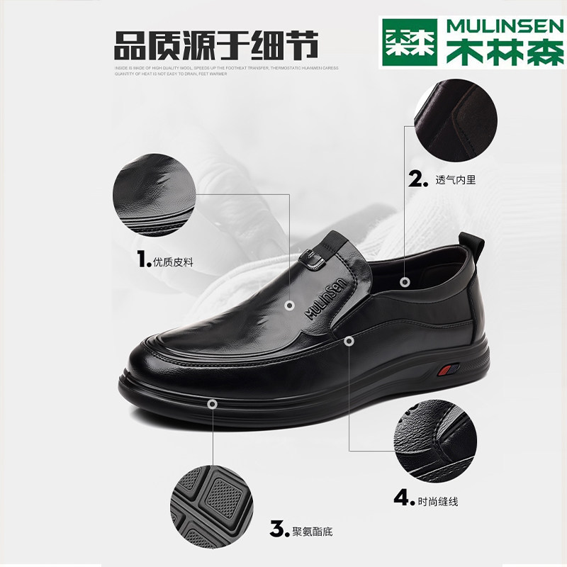 木林森皮鞋男软底一脚蹬休闲皮鞋