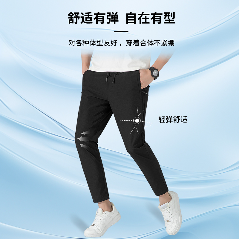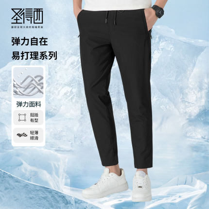 【扛皱易打理】圣得西松紧腰抽绳系带直筒长裤男25春秋季款休闲裤