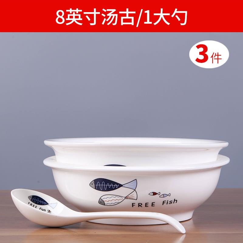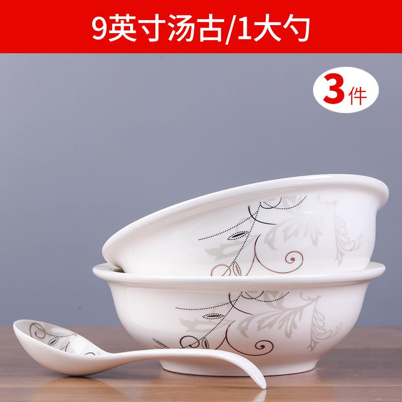 2个汤碗送汤勺大号家用陶瓷简约汤盆加厚餐具套装创意拉面骨瓷