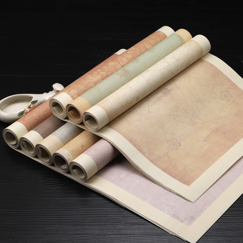 宛陵加厚蜡染微喷四尺对开宣纸半生半熟书法作品纸仿古国展投稿比赛创作书法专用纸做旧仿明清楹联条屏对联纸