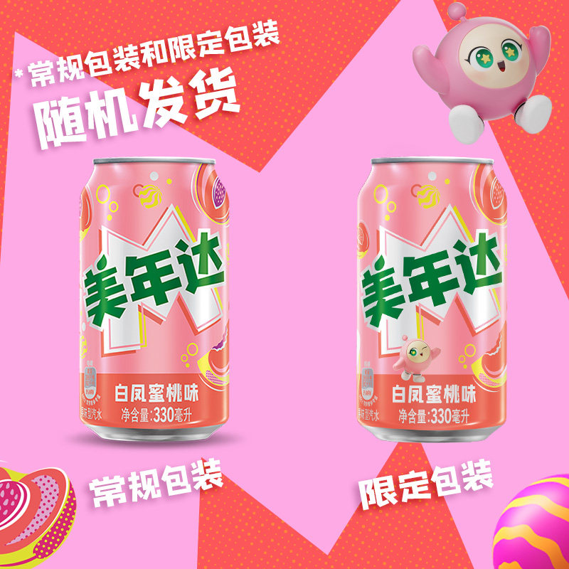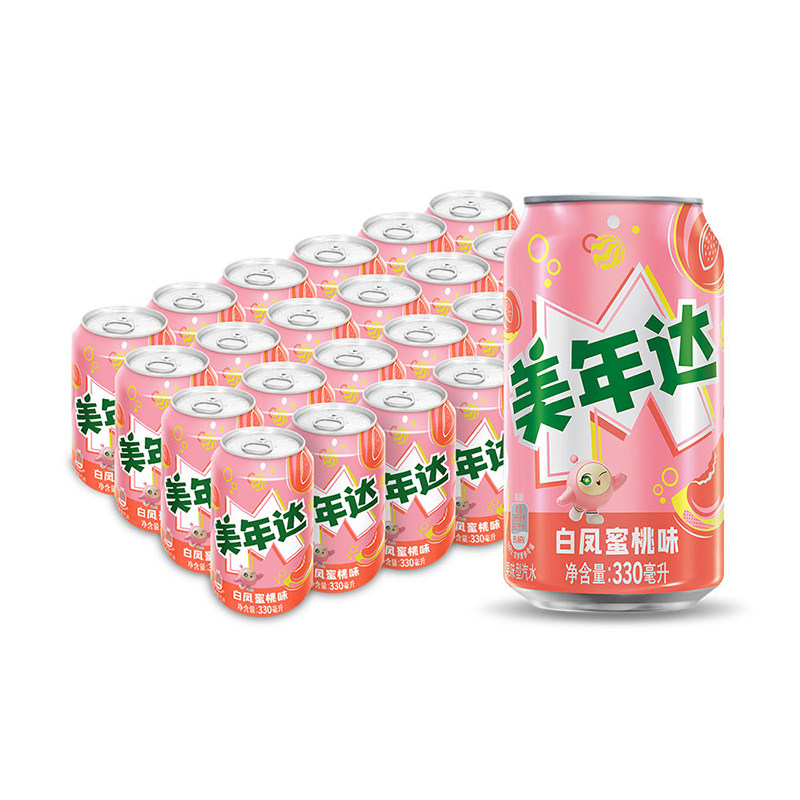 百事可乐美年达白凤蜜桃味汽水碳酸饮料整箱装