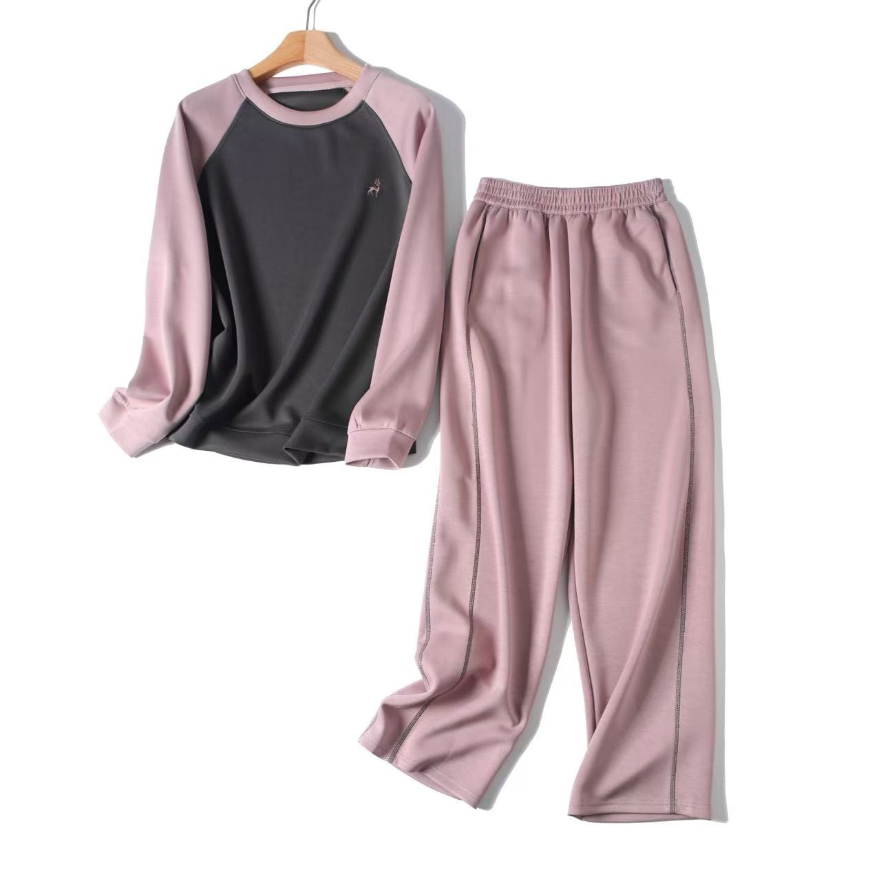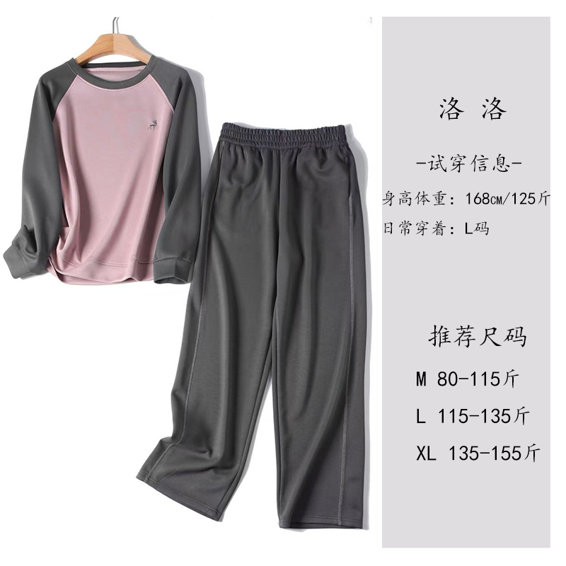 【一鹿相伴】25新款舒柔棉休闲遮肉耐穿卫衣直筒长裤两件套装8321