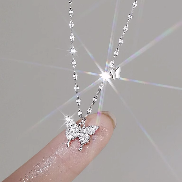 「闪耀蝴蝶」纯银s999项链女轻奢小众高级感锁骨链送闺蜜生日礼物