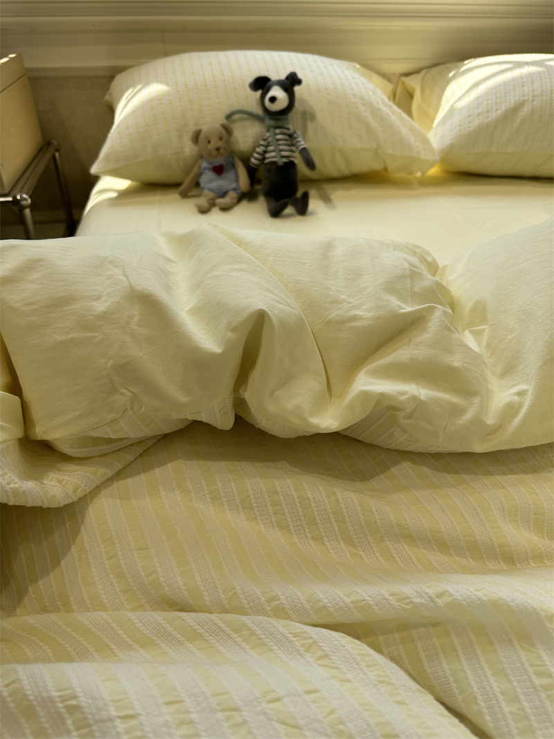色织水洗棉提花条纹黄色四件套