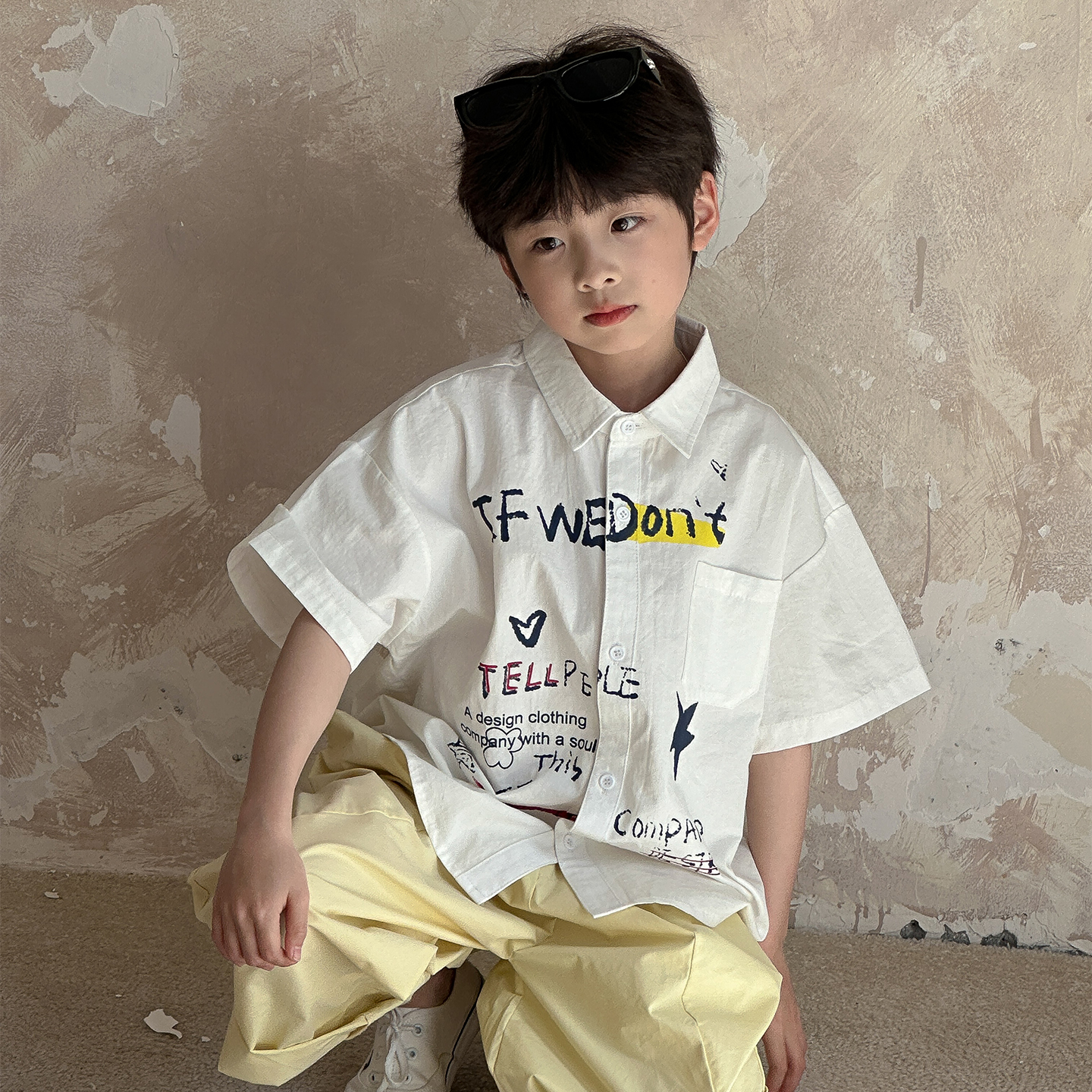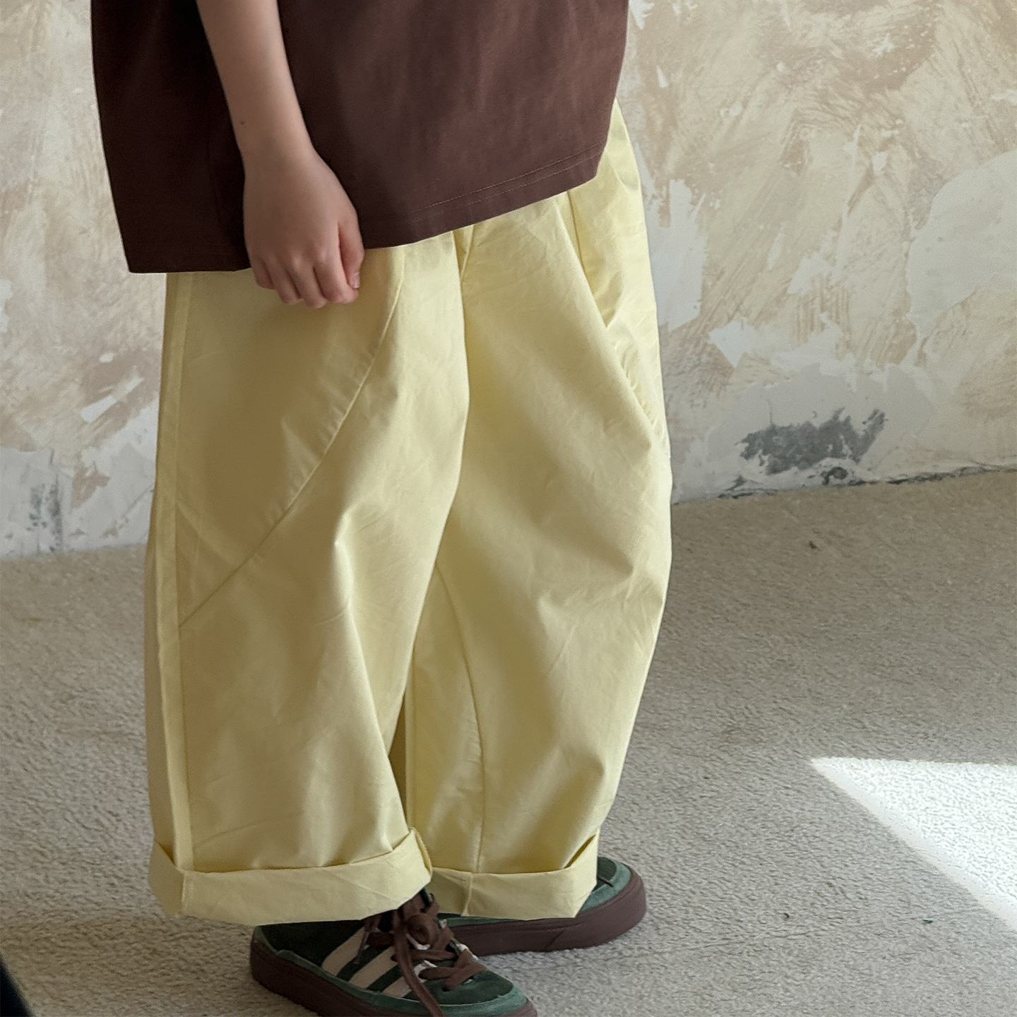 虾酱麻麻黄色纯棉宽松休闲裤
