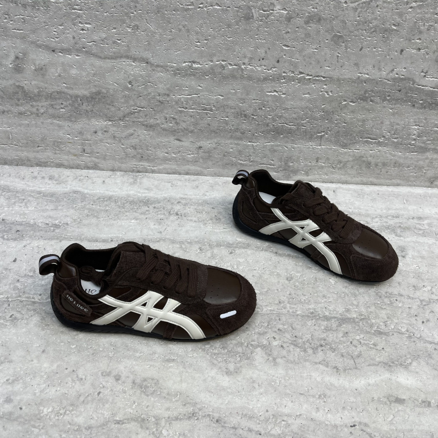 欧洲站女鞋2025秋季新款欧货绒皮系带拼色平底显脚小德训鞋板鞋女