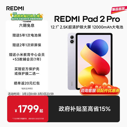 【享政府补贴】REDMI Pad 2 Pro红米平板小米平板电脑政府补贴小米平板电脑2026款新品哈利波特联名