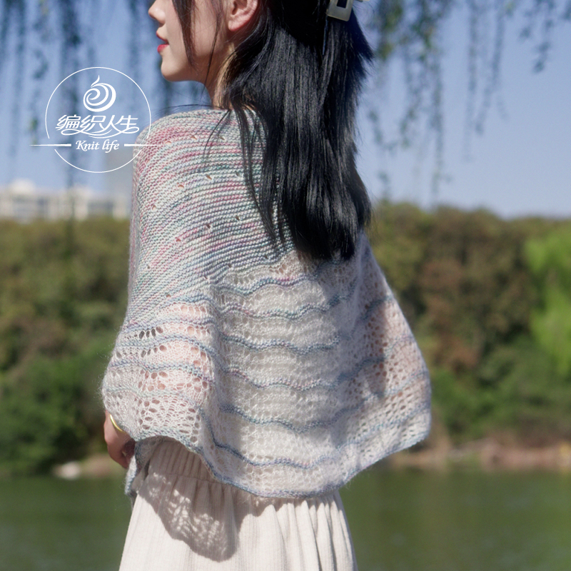 编织人生团织245溢彩 棒针披肩材料包 手工DIY手染毛线含编织教程