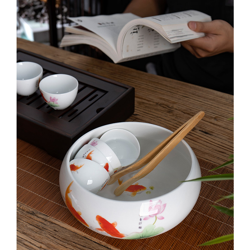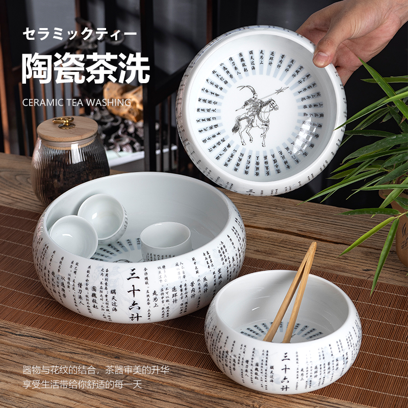 青花陶瓷茶洗小号白瓷水盂特大号水洗碗盆栽茶碗大号杯洗家用笔洗