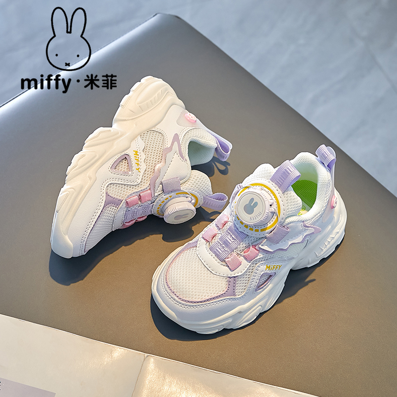 米菲童鞋女童运动鞋2025秋季新款旋转纽扣网面透气休闲儿童跑步鞋