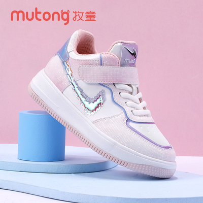 牧童100元2双男童春季板鞋高帮女孩运动鞋篮球鞋中童学生休闲防滑