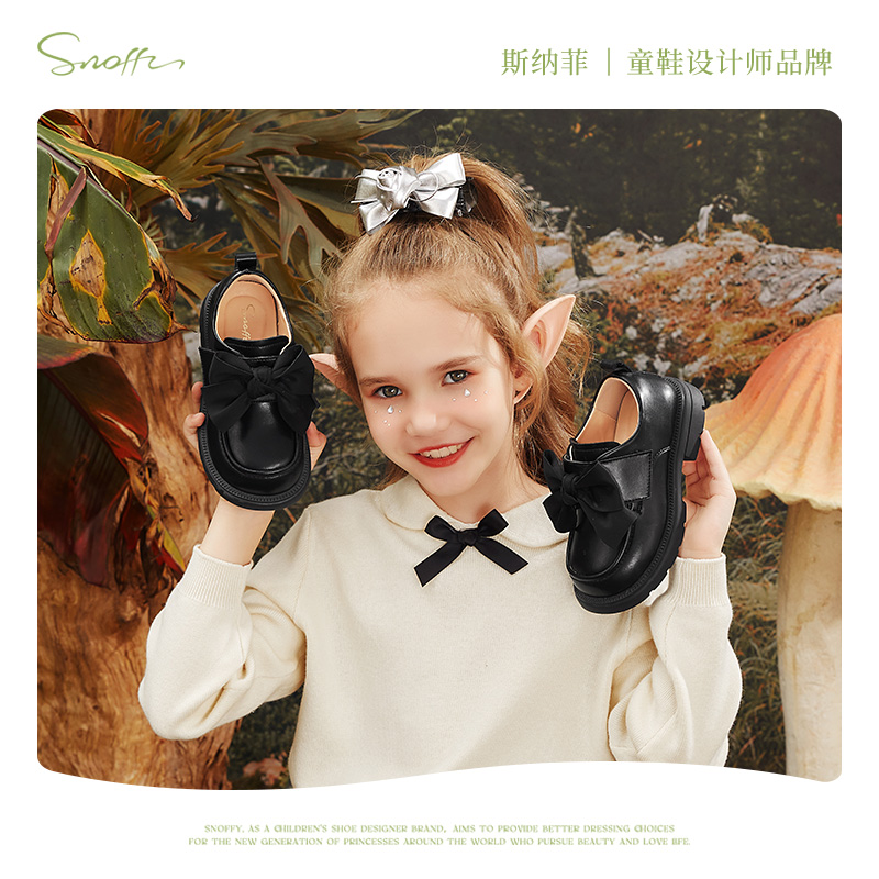 斯纳菲女童公主鞋2025新款秋季儿童软底黑色小皮鞋女孩单鞋