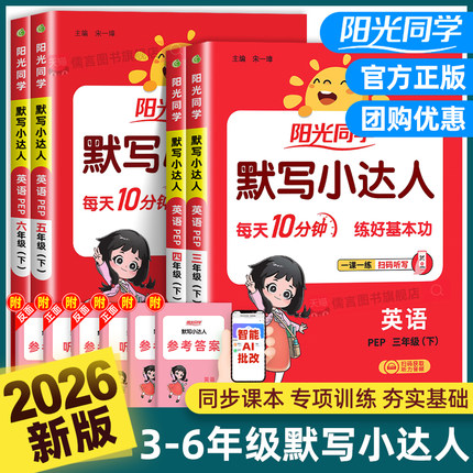 2026春新版阳光同学英语默写小达人三四五六年级上册下册人教PEP版小学专项训练课本同步配套练习题册听写本测试题词语积累天天练