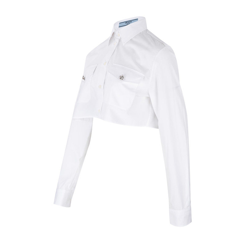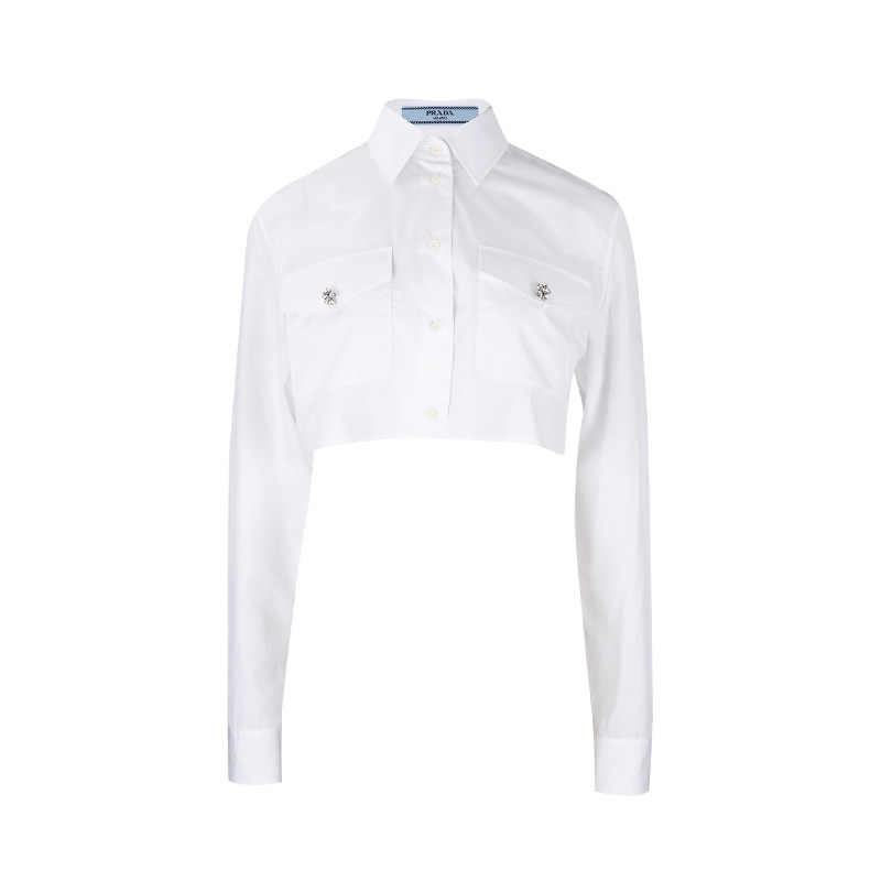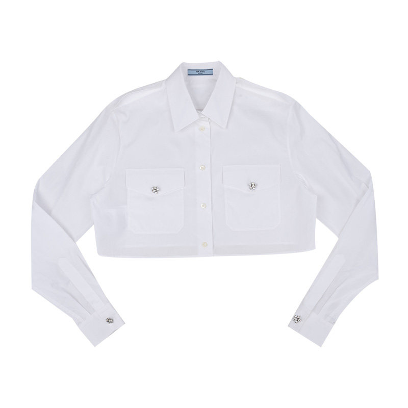 Prada/普拉达女士休闲短款全棉长袖衬衫女春夏
