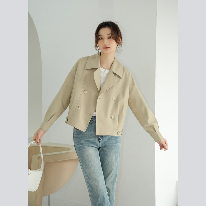 奈格薇儿小个子短款风衣女春秋2024新款休闲气质双排扣时尚短外套